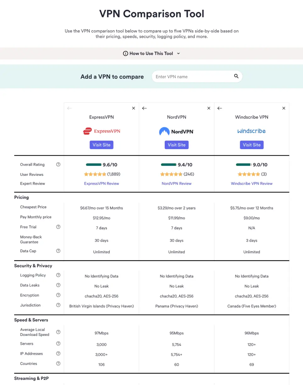 VPN Comparison Tool