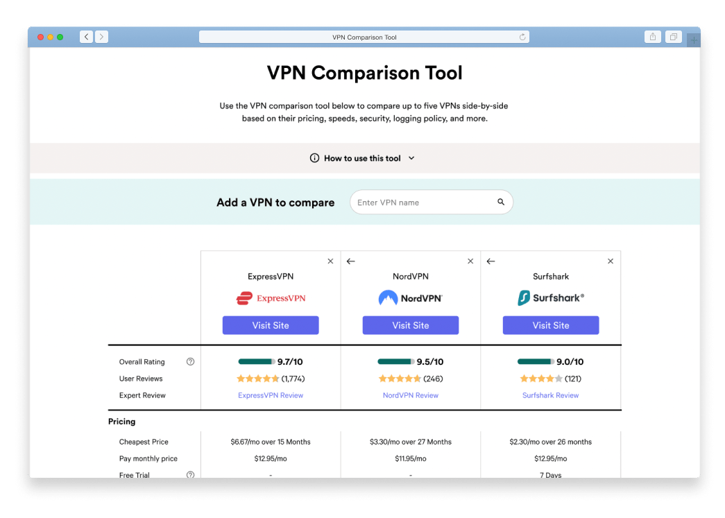Find the fastest VPN for your preferred server location using our purpose-built VPN speed comparison tool. You can view each VPN’s download speed, upload speed, or ping in eight countries across six continents.