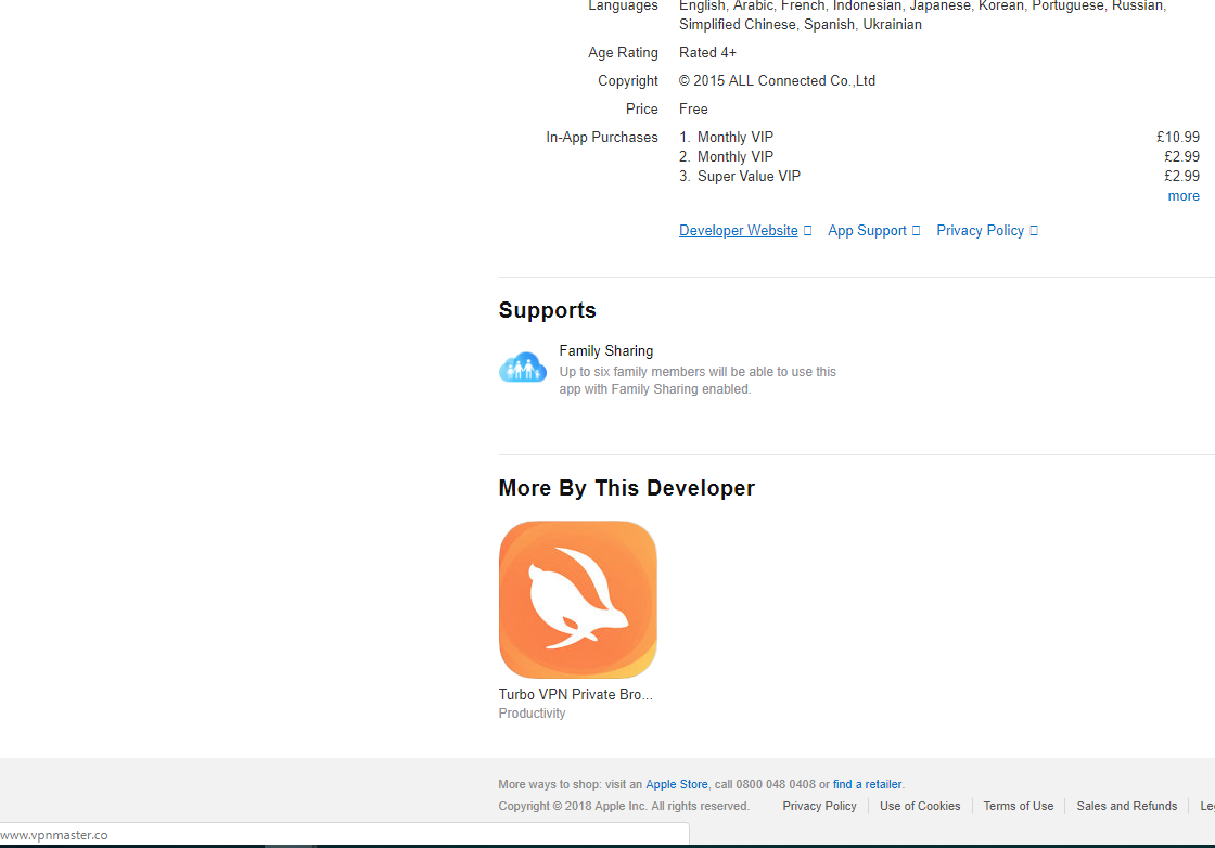 VPN Company Name: ALL Connected Co. Ltd – named developer on App Store listings for both Turbo VPN and VPN Master apps