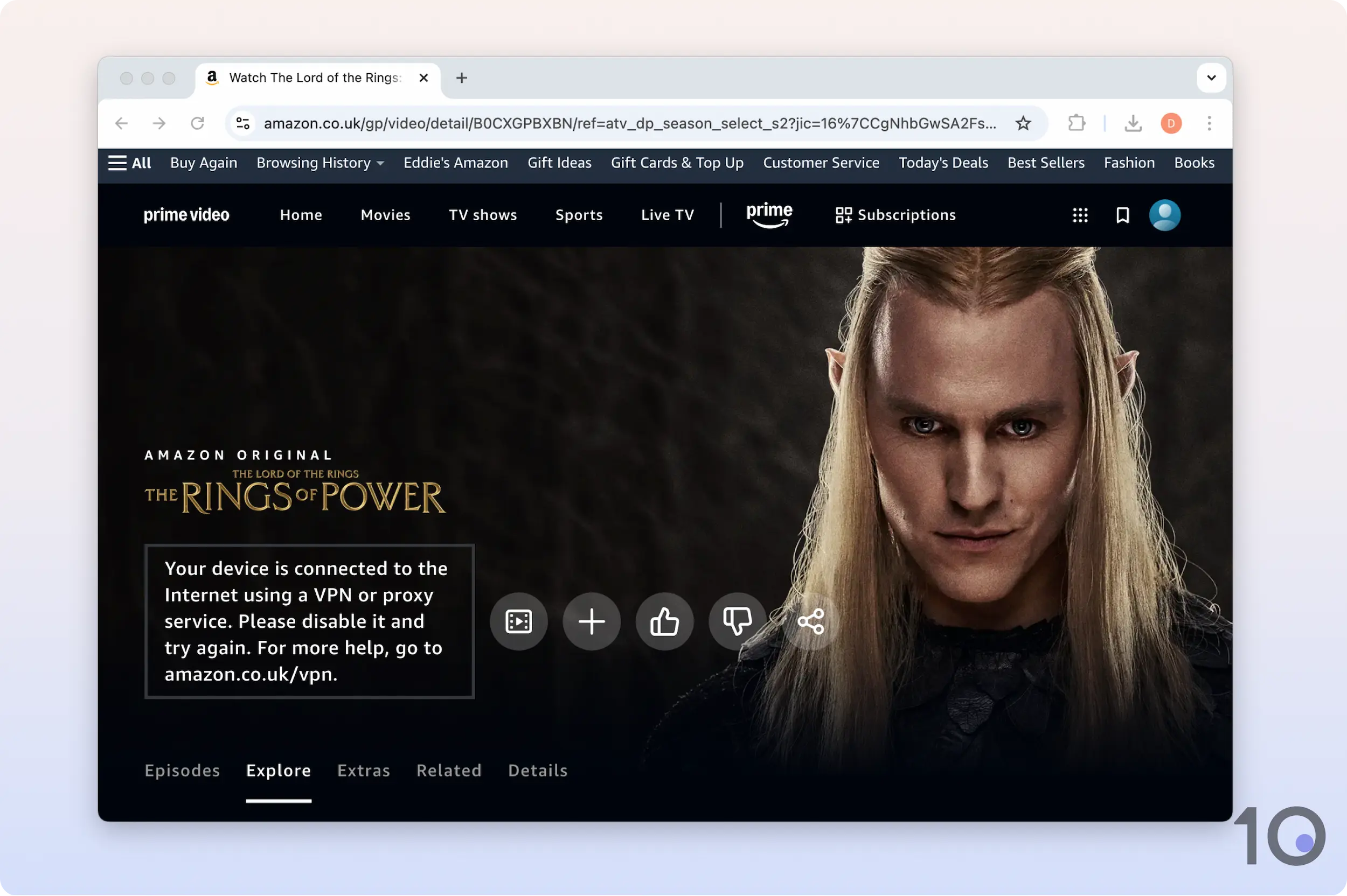 Je weet dat je VPN wordt geblokkeerd door Amazon als je de onderstaande foutmelding ziet: