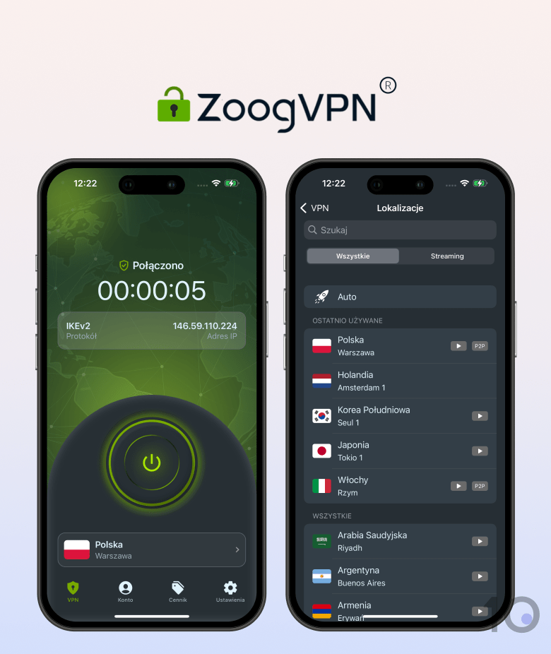 Aplikacje mobilne ZoogVPN są łatwe do zainstalowania bezpośrednio z oficjalnych sklepów z aplikacjami i proste w obsłudze.