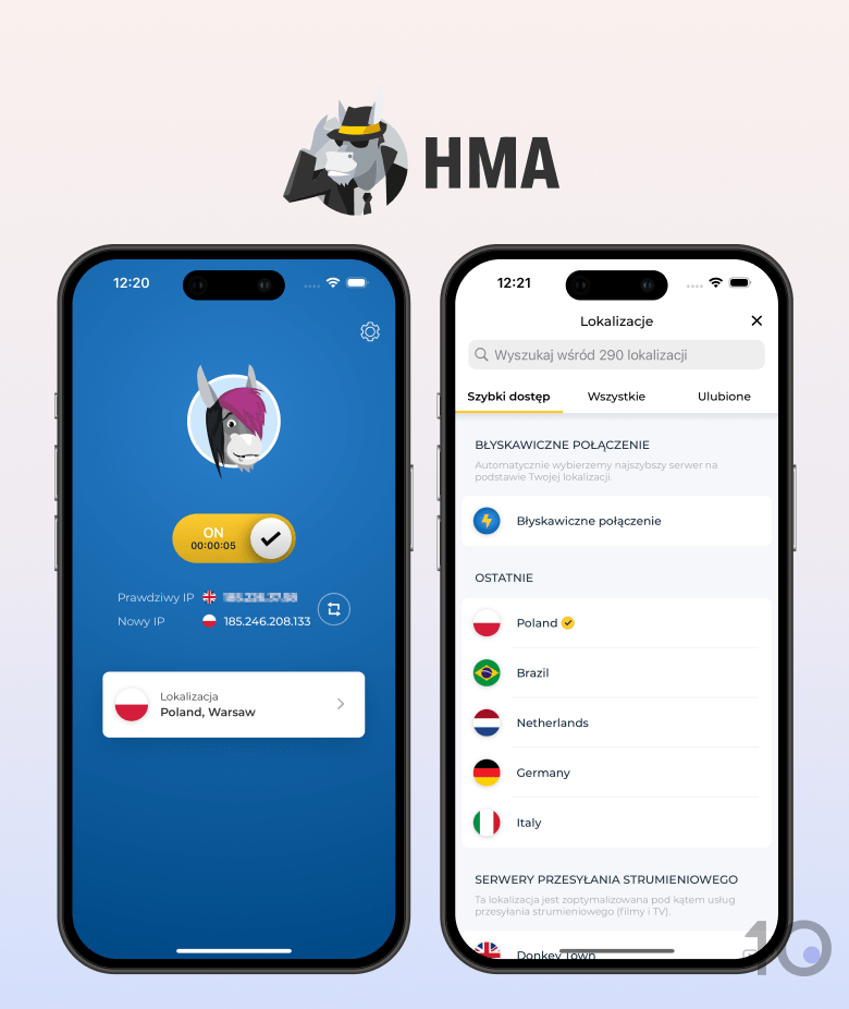 HideMyAss (HMA) to łatwy w obsłudze i bezpieczny VPN z serwerami w 195 krajach i aplikacją w języku polskim. Jego intuicyjne aplikacje, siedmiodniowy, darmowy okres próbny oraz wysokie prędkości sprawiają, że jest to dobra opcja do codziennego użytkowania. Niestety, VPN nie odblokowuje większości platform streamingowych, w tym Netflixa. Brakuje mu pewnych zaawansowanych funkcji, kompatybilności z większą liczbą urządzeń, a także infrastruktury obsługi klienta oczekiwanej od najlepszych usług VPN.